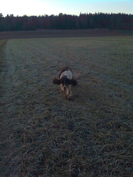 Nu har det blivit nyårsafton. Direkt efter jobbet så gick vi till fältet som är där bakom parkeringen. Oj, va jyckarna sprang (som synes på bilden... *harkl*). Men det sprangs och kutades en hel del faktiskt. Speciellt av Grrrrooomittt.