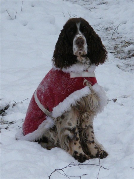 Tomten Spirous tomtemantel som annars är så skinande röd och fin har blivit alldeles skrynklig och fult snöig och dan. Usch och fy vad hemskt!